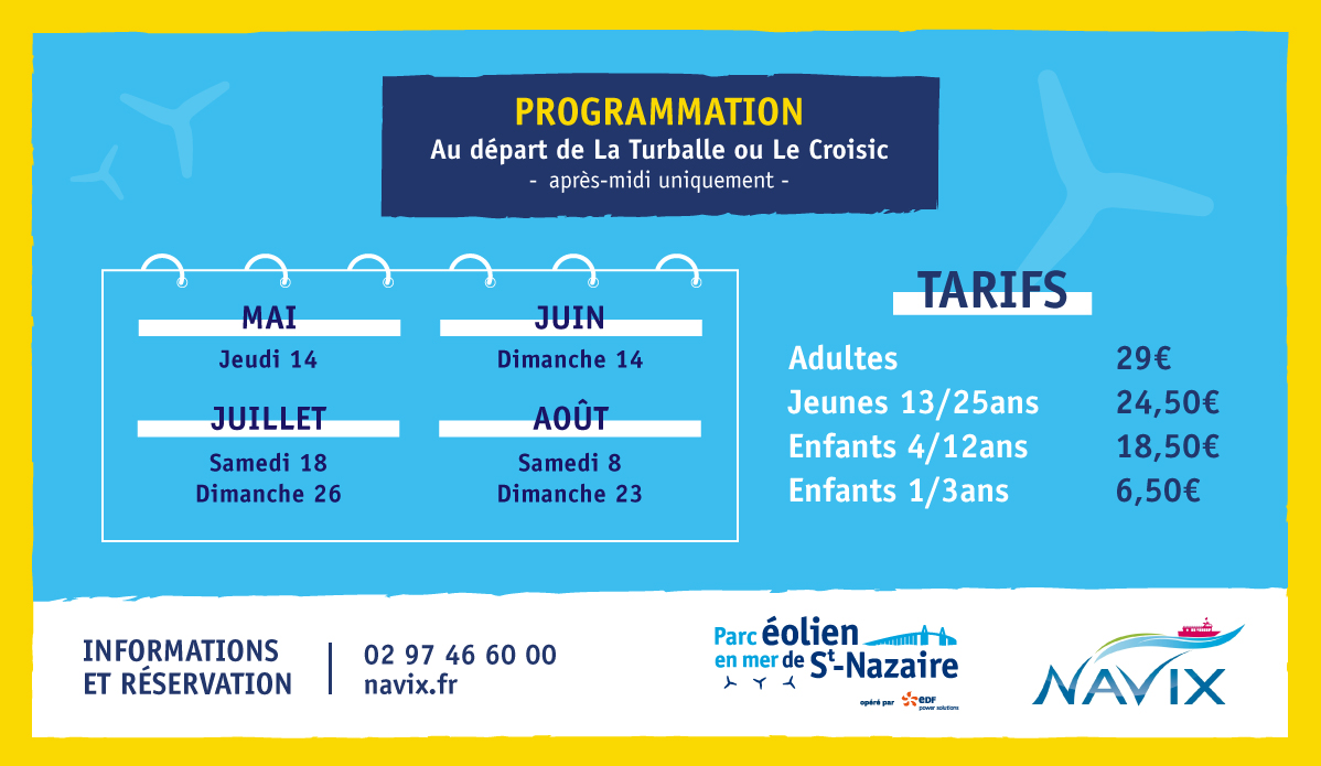 Différentes alternatives s’offrent à vous pour embarquer au plus près des éoliennes et en apprendre davantage sur ce projet inédit en France.